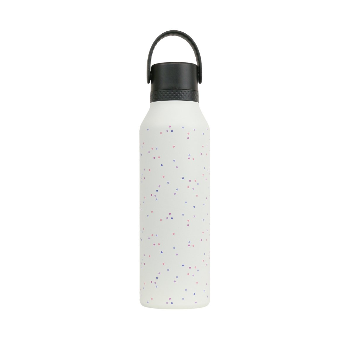 Botella termo de diseño exclusivo con aislamiento al vacío que evita la condensación, el exterior siempre estará a temperatura ambiente. Mantiene la temperatura fría hasta 32h y caliente hasta 24h.