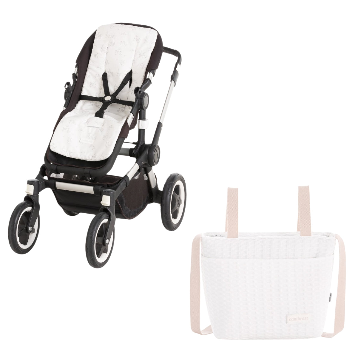 El pack de paseo Cambrass Merlo Plain incluye una colchoneta universal y un bolso a juego en un tono neutro y sofisticado. La colchoneta está fabricada con materiales transpirables y acolchados que aseguran la comodidad del bebé, y es compatible con la mayoría de sillas de paseo. El bolso, práctico y espacioso, permite organizar todos los imprescindibles y cuenta con asas adaptables para llevarlo al hombro o colgarlo del carrito. Un conjunto discreto, moderno y muy funcional para el día a día.