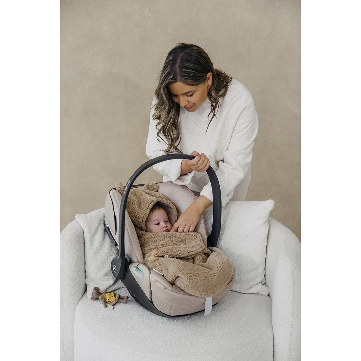 Esta manta no solo es súper suave, sino también muy práctica. Gracias a las aberturas en la parte trasera, puedes colocarla fácilmente en una silla de coche con arnés de tres o cinco puntos. Así tu peque viaja calentito y seguro. También es perfecta para usar en el carrito o en la hamaca.