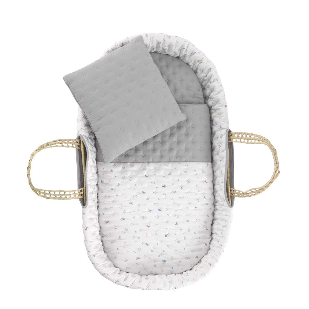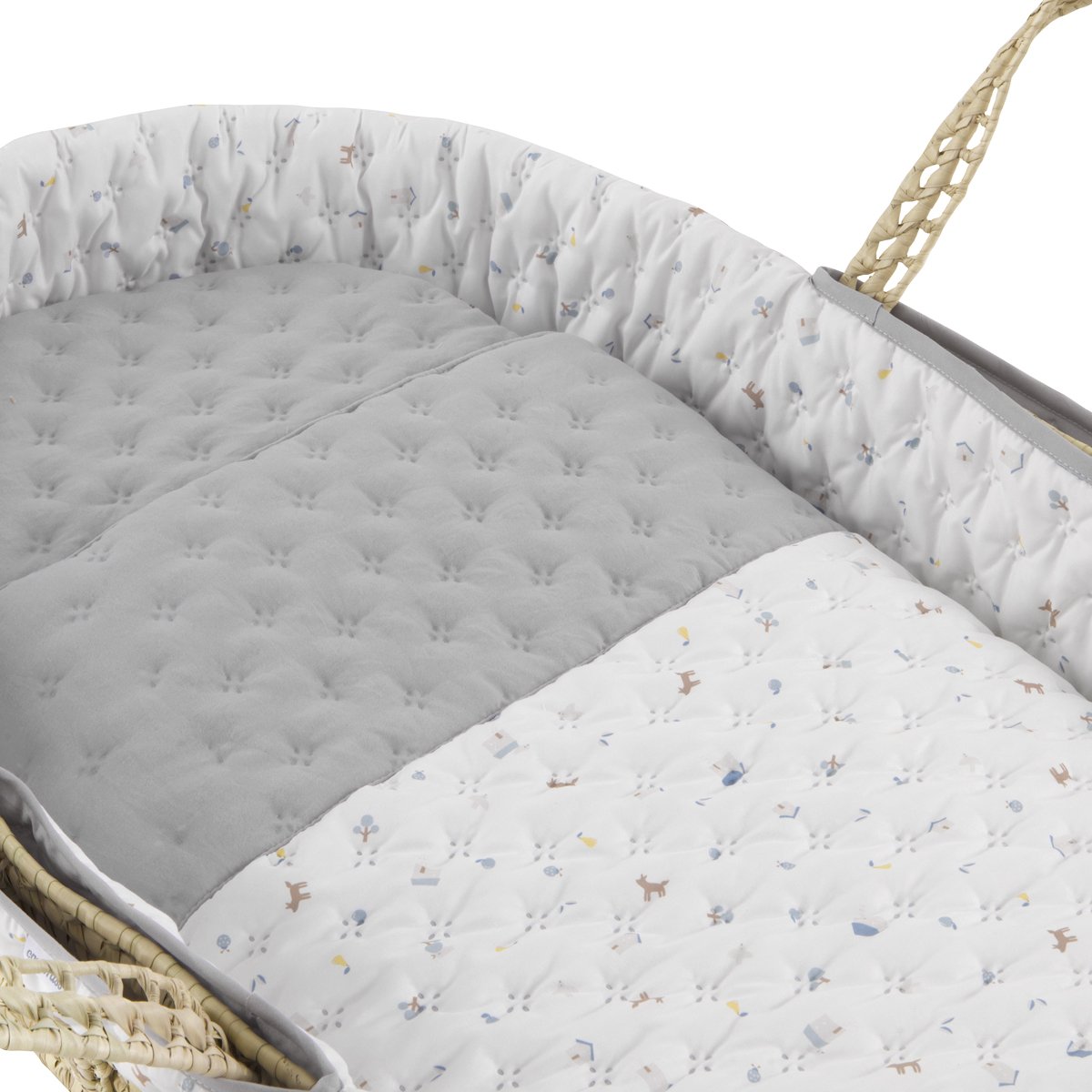 El moisés de palma acolchado de Cambrass, está indicado para los primeros meses de vida del bebé y gracias a sus asas su transporte es muy sencillo. Fabricado en España. Por Cambrass.
