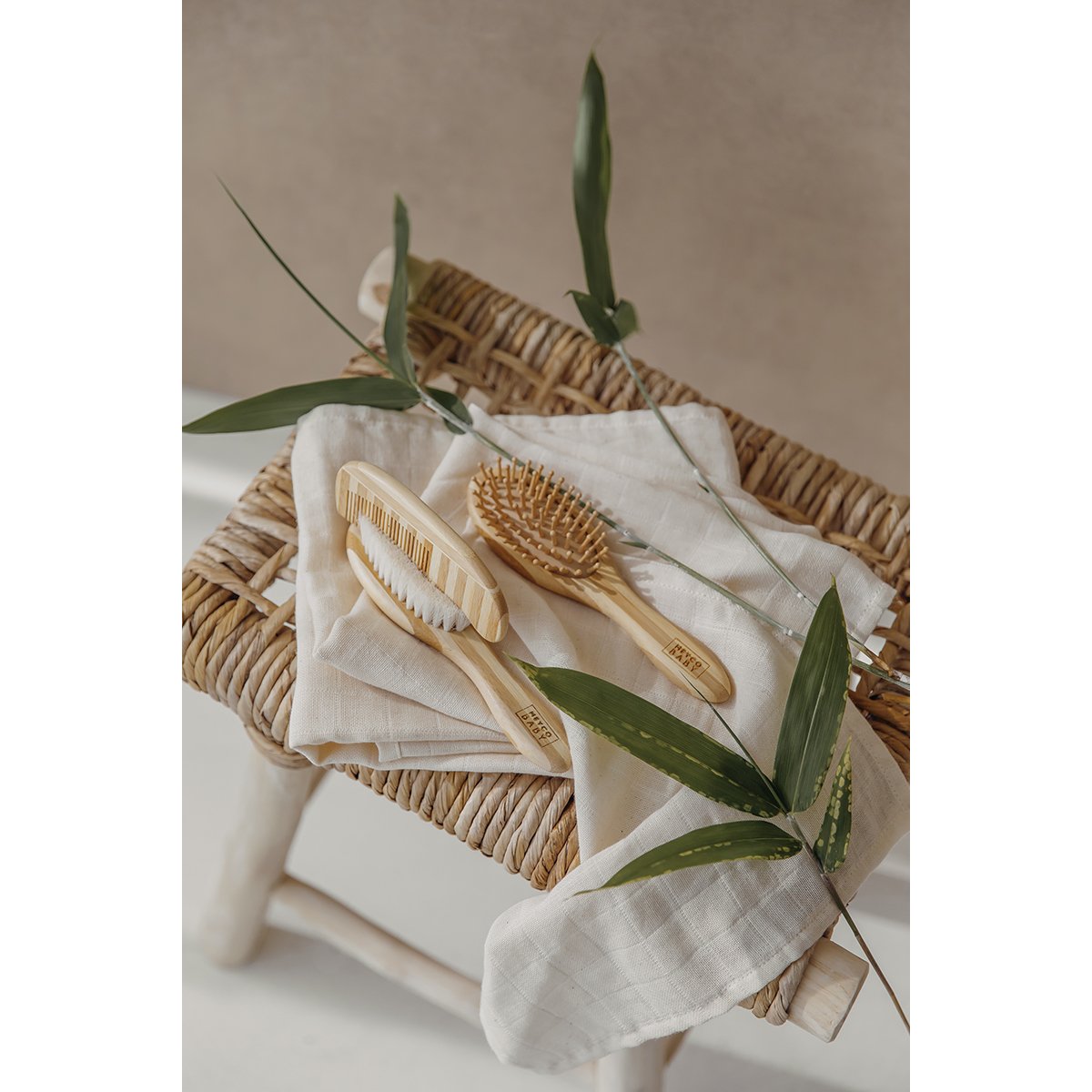 Estas versátiles gasas, hechas de algodón 100% muselina prelavado, son la solución perfecta para los momentos del día a día. La muselina se seca rápidamente y absorbe muy bien la humedad, lo que te permite secar a tu pequeño incluso en los pliegues más pequeños. El tejido prelavado se siente extra suave, justo lo que necesita la piel delicada del bebé.
