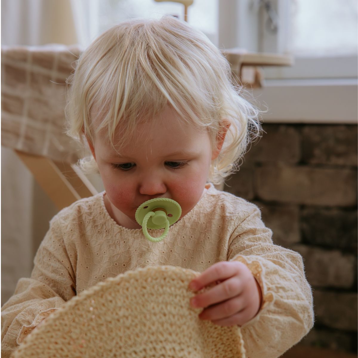 FRIGG Rope evoca aventuras de fuerza y seguridad con su diseño inspirado en cuerdas. Perfecto para niños y niñas intrépidos, este chupete redondo ofrece tanto estilo como funcionalidad.