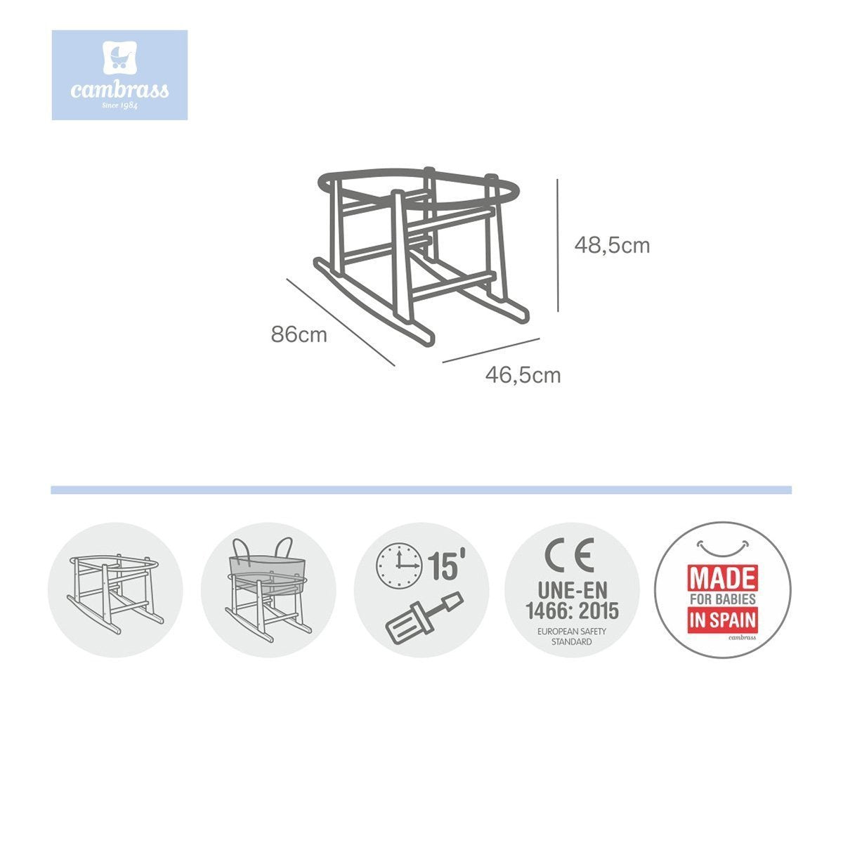 El porta Cuco de Cambrass o portacapazo . Está fabricado en madera natural, su altura permite la visibilidad del bebé por parte del adulto en todo momento o bien desde la cama. Tiene función de Balancin para facilitar el sueño de los bebes, Cumple la norma UNE-EN 1466:2015, Fabricado en España por Cambrass