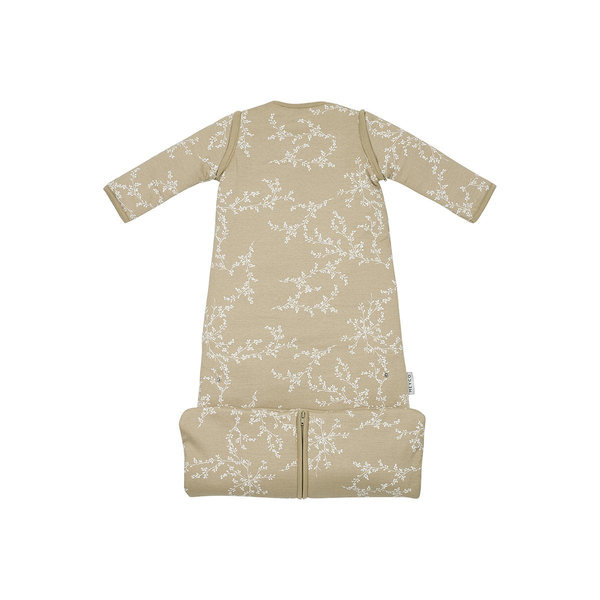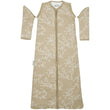 El saco está compuesto por un saco exterior acolchado con mangas desmontables y un saco interior que puede unirse fácilmente mediante prácticos corchetes. El saco interior se utiliza por separado durante los días y noches cálidos de verano el saco exterior acolchado es perfecto para primavera y otoño y juntos son la solución ideal para los fríos días y noches de invierno.