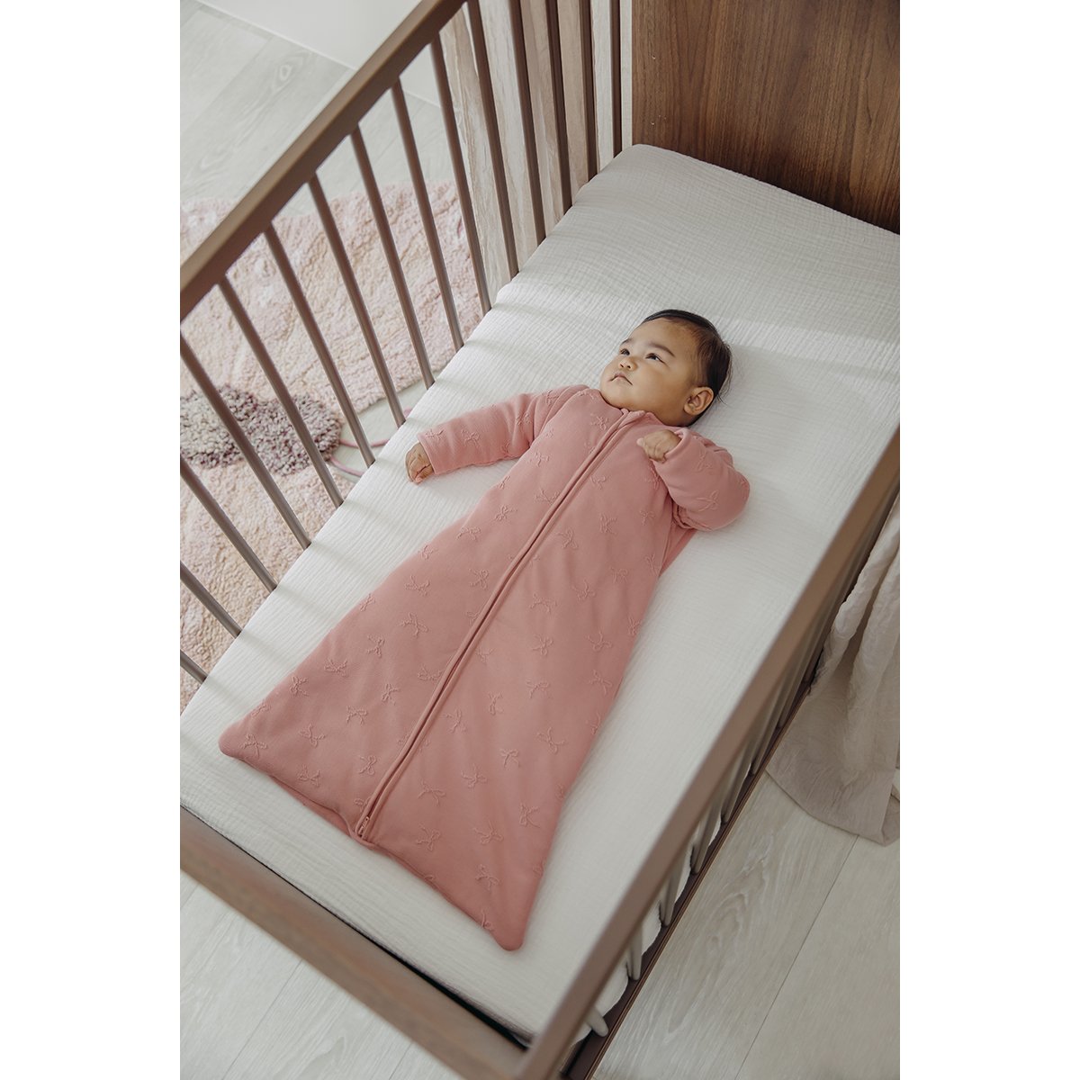 Para un descanso perfecto, un saco de dormir cómodo y seguro es esencial para tu peque. El saco de dormir Meyco Baby con apliques 3D de lazo ofrece todo lo que buscas: suavidad, calidez y un diseño moderno. Los delicados detalles en forma de lazos 3D aportan un toque lujoso y juguetón que combina fácilmente con los demás básicos del bebé. Más sobre el saco de dormir Studio Bow Este saco de dormir acolchado cuenta con mangas desmontables y un valor TOG de 2.5, lo que lo hace ideal para utilizarlo en diferentes estaciones del año. El exclusivo aplique 3D de lazo añade un acabado elegante, mientras que su tejido suave garantiza el máximo confort. El ajuste seguro abraza suavemente el cuello y los brazos del bebé para evitar que se deslice hacia el interior. Además, su cremallera larga que recorre todo el frontal permite vestir, desvestir o cambiar el pañal de forma rápida y sencilla, sin interrumpir el sueño del pequeño. Ventajas Diseño exclusivo con lazos 3D para un aspecto lujoso Parte de la colección Studio Saco acolchado con tejido exterior compuesto por 56% algodón, 40% poliéster y 4% elastano, y un suave forro interior 100% algodón para mayor confort y calidez Mangas desmontables: apto para varias estaciones Fácil de poner y quitar gracias a la cremallera larga Tallas Desde los más pequeñitos hasta los ya no tan pequeños, este saco está disponible en las siguientes medidas: 60 cm: adecuado hasta aprox. 4 meses / altura: 5065 cm 70 cm: adecuado desde aprox. 3 a 9 meses / altura: 6075 cm 90 cm: adecuado desde aprox. 6 a 30 meses / altura: 7095 cm 110 cm: adecuado desde aprox. 24 meses / altura: 90115 cm Nota: La altura del bebé es más importante que la edad a la hora de escoger la talla. Un saco correctamente ajustado evita que el bebé se deslice hacia abajo o se sienta restringido en sus movimientos. Nunca utilices un saco si la cabeza del bebé cabe por la abertura del cuello. Cómo mantener tu saco de dormir bonito durante más tiempo Utiliza una pequeña cantidad de detergente (mejor para el tejido y el medio ambiente) Lavable a máquina hasta 30 °C Apto para secadora Se puede planchar a temperatura media-alta Colección Meyco Baby Studio La colección Studio de Meyco Baby es una línea exclusiva con productos lujosos para tu peque. Esta colección apuesta por alta calidad a un precio accesible. Cada artículo está elaborado con materiales premium, prestando especial atención al detalle, el confort y el diseño. Perfecta para mamás y papás que buscan un toque extra de sofisticación.