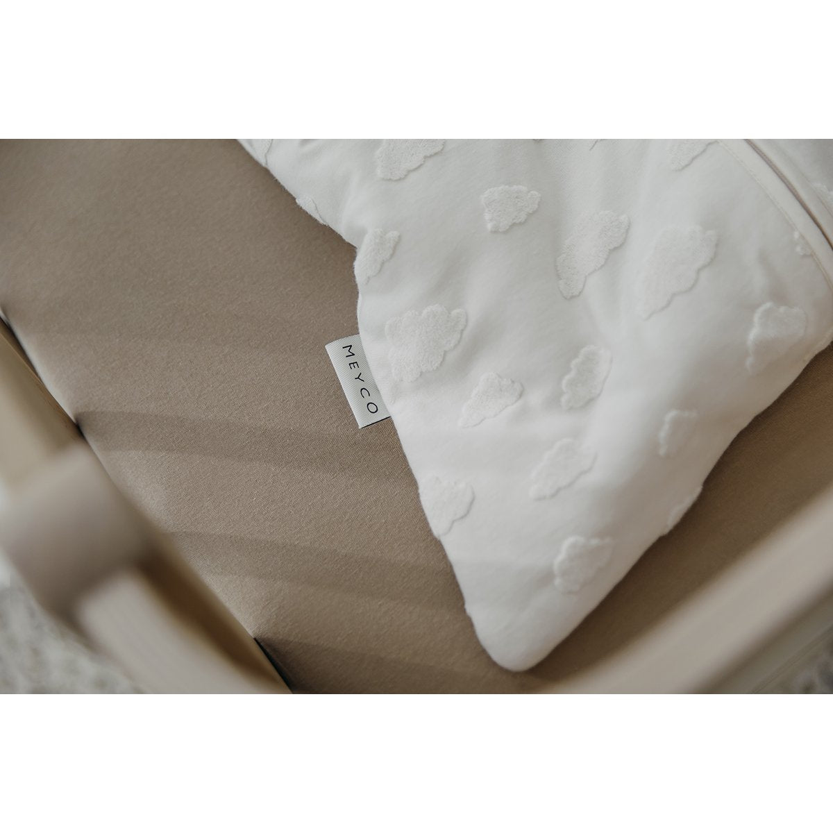 ¡Wow! El saco de dormir Meyco Baby Studio Clouds es un auténtico imprescindible de nuestra nueva colección Studio. Este saco destaca por su diseño exclusivo con un refinado relieve 3D de nubes, que le aporta un aspecto lujoso y único y además es tan suave al tacto como parece. Tu peque dormirá con el máximo confort y, por supuesto, con mucho estilo. Las mangas desmontables lo hacen perfecto para los días frescos de primavera y otoño, así como para las frías noches de invierno.