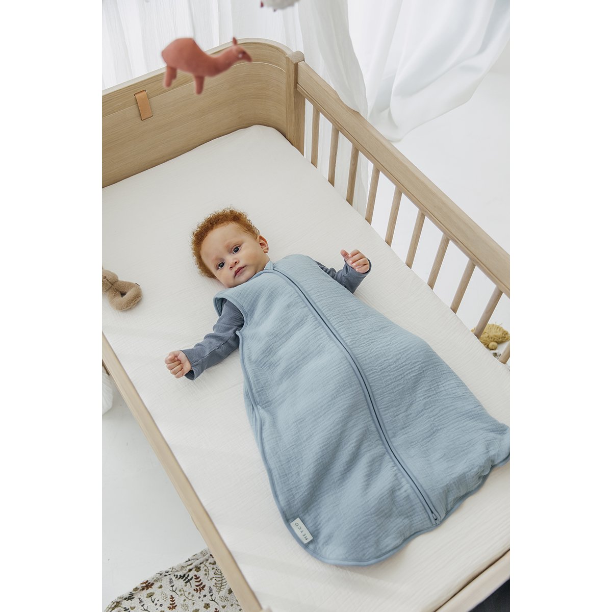 El saco de dormir Meyco Baby de muselina forrada está disponible en varios colores de tendencia, por lo que siempre encontrarás uno que combine con la habitación del bebé y con el resto de sus accesorios. Está confeccionado en muselina prelavada 100% algodón y cuenta con un relleno de 100% poliéster. Gracias a esta combinación, es perfecto para la primavera, el otoño y para los días y noches más frías del invierno. La muselina es un tejido muy transpirable, con excelente capacidad de absorción y secado rápido, lo que ayuda a mantener el entorno de descanso de tu peque a la temperatura ideal.