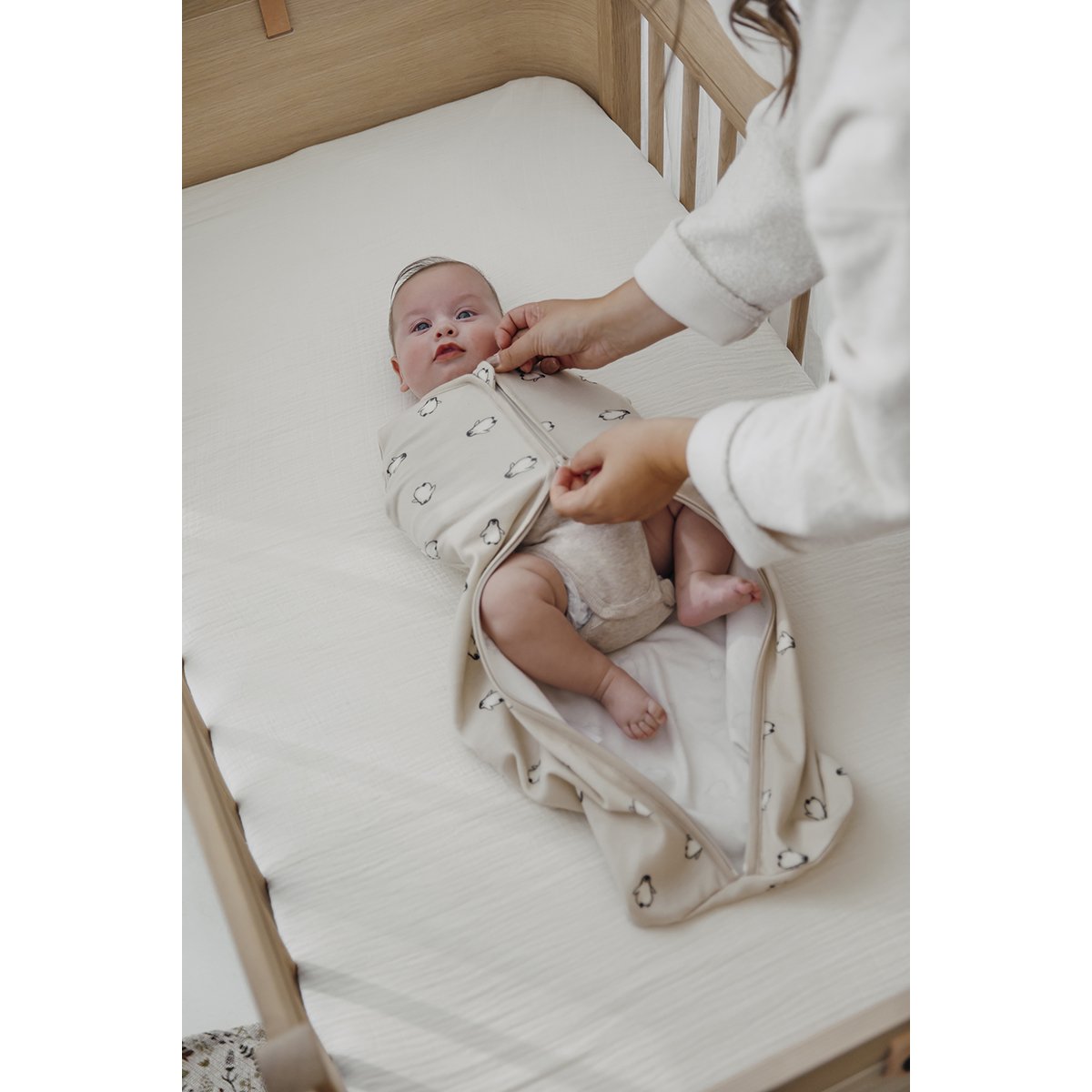 Para los padres que buscan una forma gradual de dejar el arrullo, el cocoon es una excelente opción. Permite que el bebé se acostumbre poco a poco a dormir sin estar completamente envuelto. Una vez que tu peque (normalmente alrededor de los 6 meses) comienza a darse la vuelta, es esencial dejar de arrullarlo inmediatamente, ya que puede ser peligroso. Por eso, es recomendable empezar la transición antes, y aquí es donde el cocoon resulta especialmente práctico.