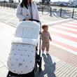 Compatible con la mayoría de sillas de paseo, incluye aberturas universales para arneses y una cremallera frontal que permite abrirlo por completo para mayor comodidad. Ligero pero muy calentito, es ideal para el día a día en la ciudad o para escapadas de fin de semana.