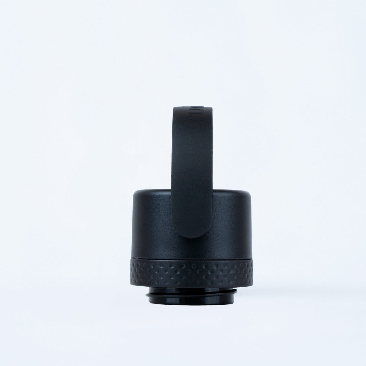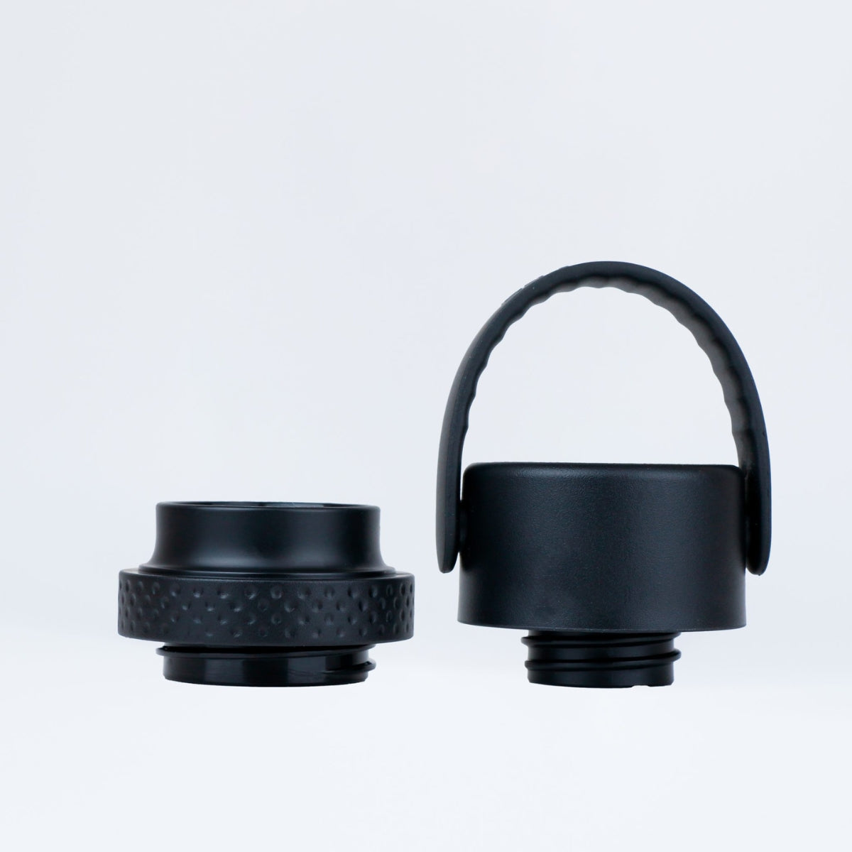 Tapón rosca de plástico con goma hermética, no pierde, no condensa humedad y conserva la temperatura. Posee una práctica banda de goma, irrompible y útil para llevar o colgar de tu mochila.